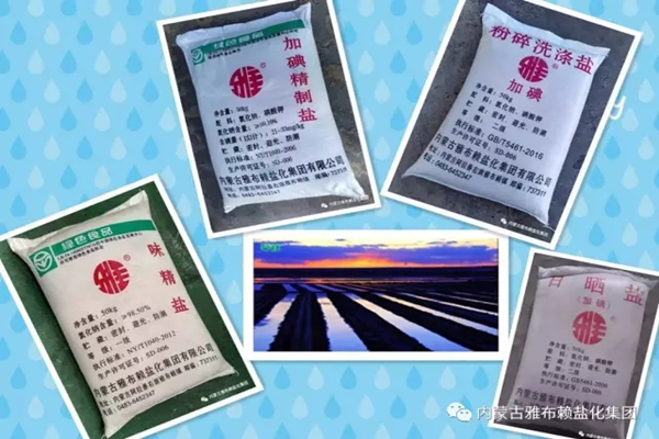 目前的“雅”牌天然湖盐食用盐系列包括50Kg加碘精制盐、50Kg加碘日晒盐、50Kg粉碎洗涤盐、20Kg加碘精制盐(400g*50袋)19.2Kg大青盐、19.2Kg晶粒盐、20Kg腌制盐等还有为您健康助力的19.2Kg果蔬洗涤盐, |