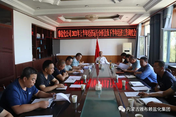 8月16日,雅盐化集团公司召开2021年上半年经济运行分析会及下半年经济工作调度会, 总结公司上半年经济运行情况,分析存在的问题,安排部署下半年重点工作任务,为年度目标的实现奠定基础。集团公司党委委员、中层管理人员参加会议。集团公司党委书记、董事长孙刚德主持会议。